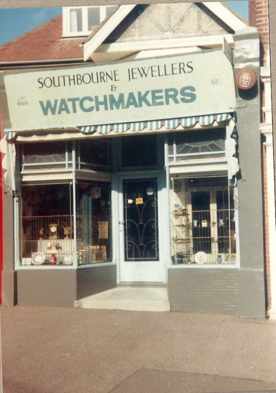 Southbourne Jewellers, (Mark Woolfson), 52a Southbourne Road, Bournemouth, exterior, c.1980. Photograph courtesy of Jonathan Woolfson.