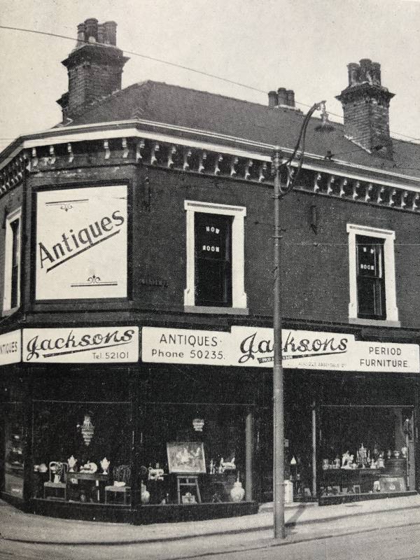 Jackson's, London Road, Sheffield, exterior, 1957. Photograph Antiques Yearbook 1957 (Tantivy Press).